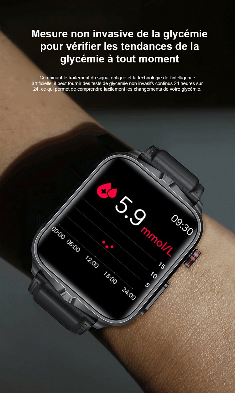 Mesure de la glycémie sans aiguille, surveillance complète de la pression artérielle électrocardiaque, santé sans souci!