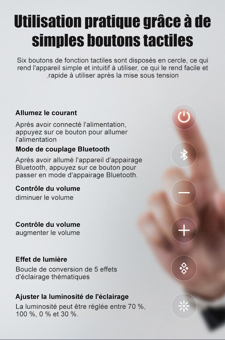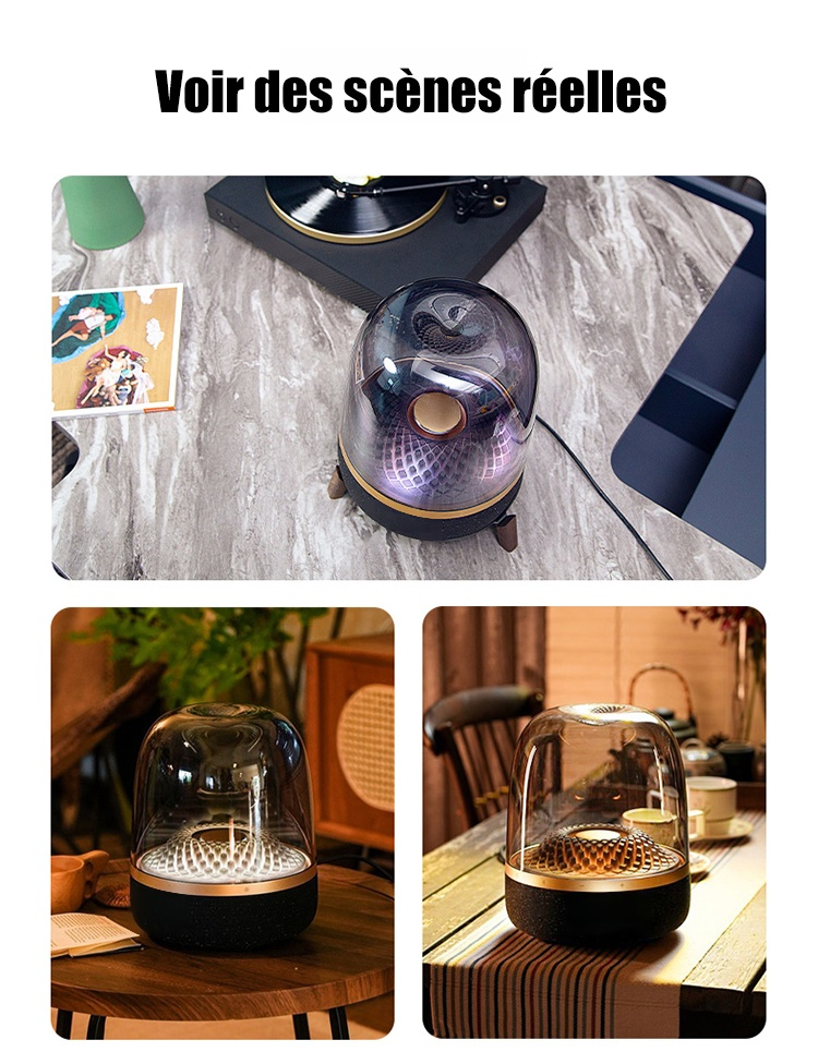 Nouvelle enceinte Bluetooth avec éclairage coloré en verre émaillé.